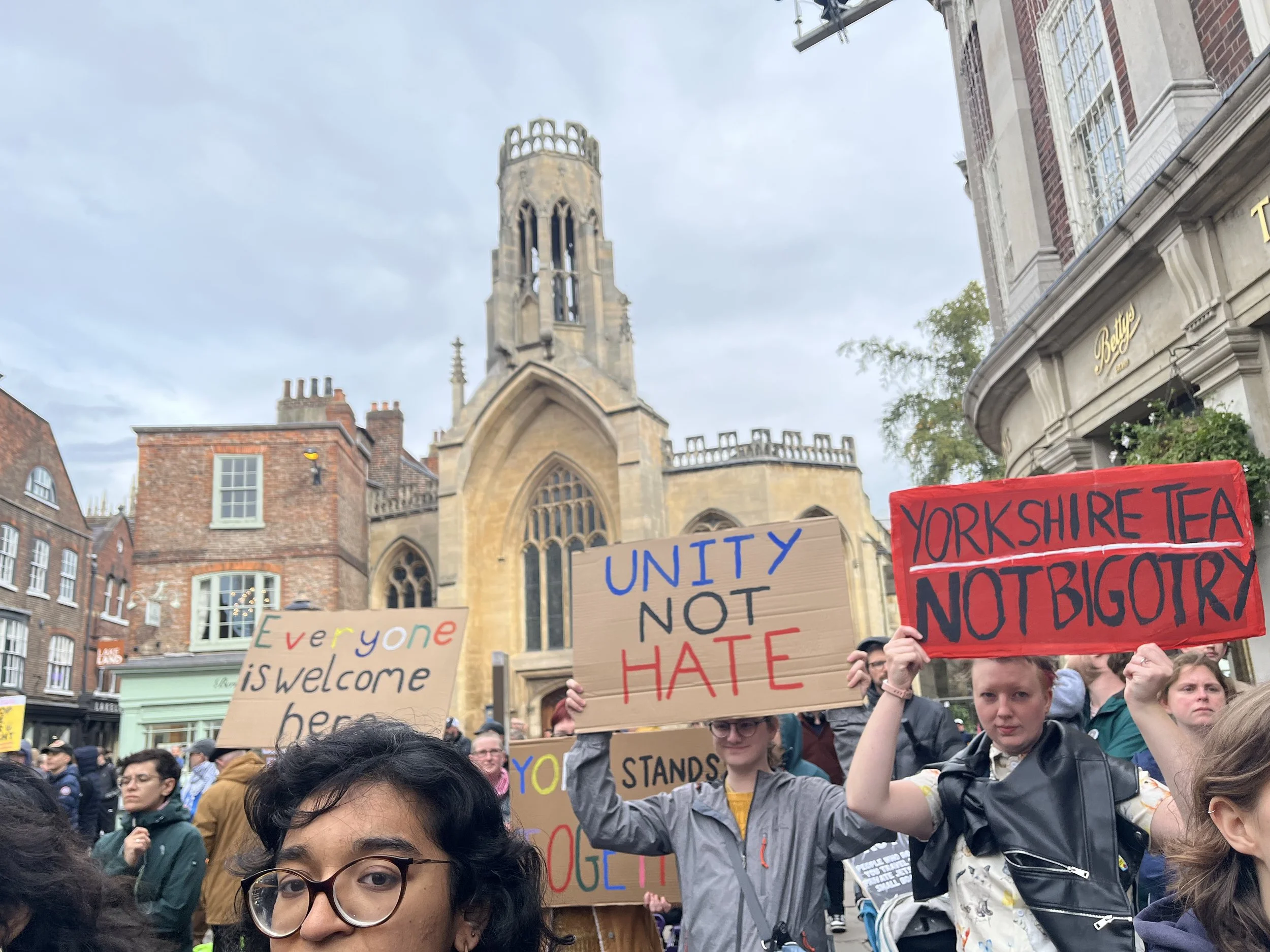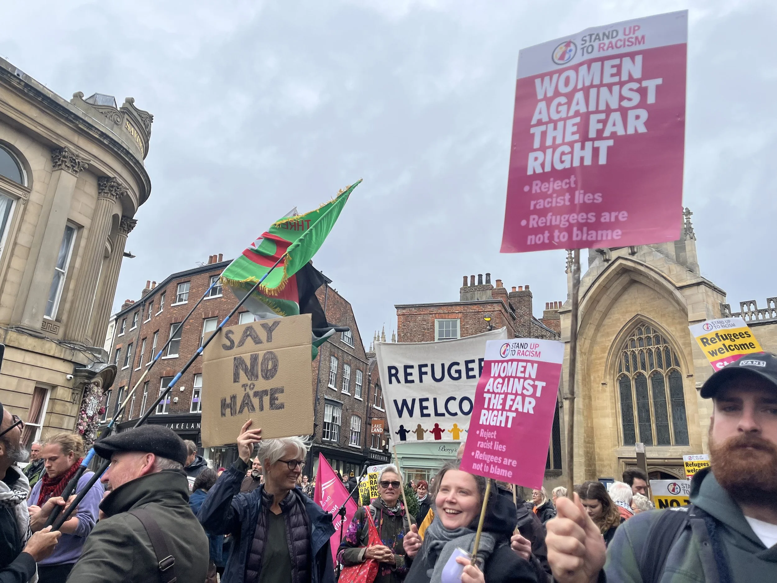 On 5th October 2025 the good people of York rallied to counteract the hate talk that was beginning to circulate around the St George Cross flags that were appearing in the city. I have been volunteering with Refugee Action York for some time and a number of volunteers joined the Stand Up to Racism Rally in York..