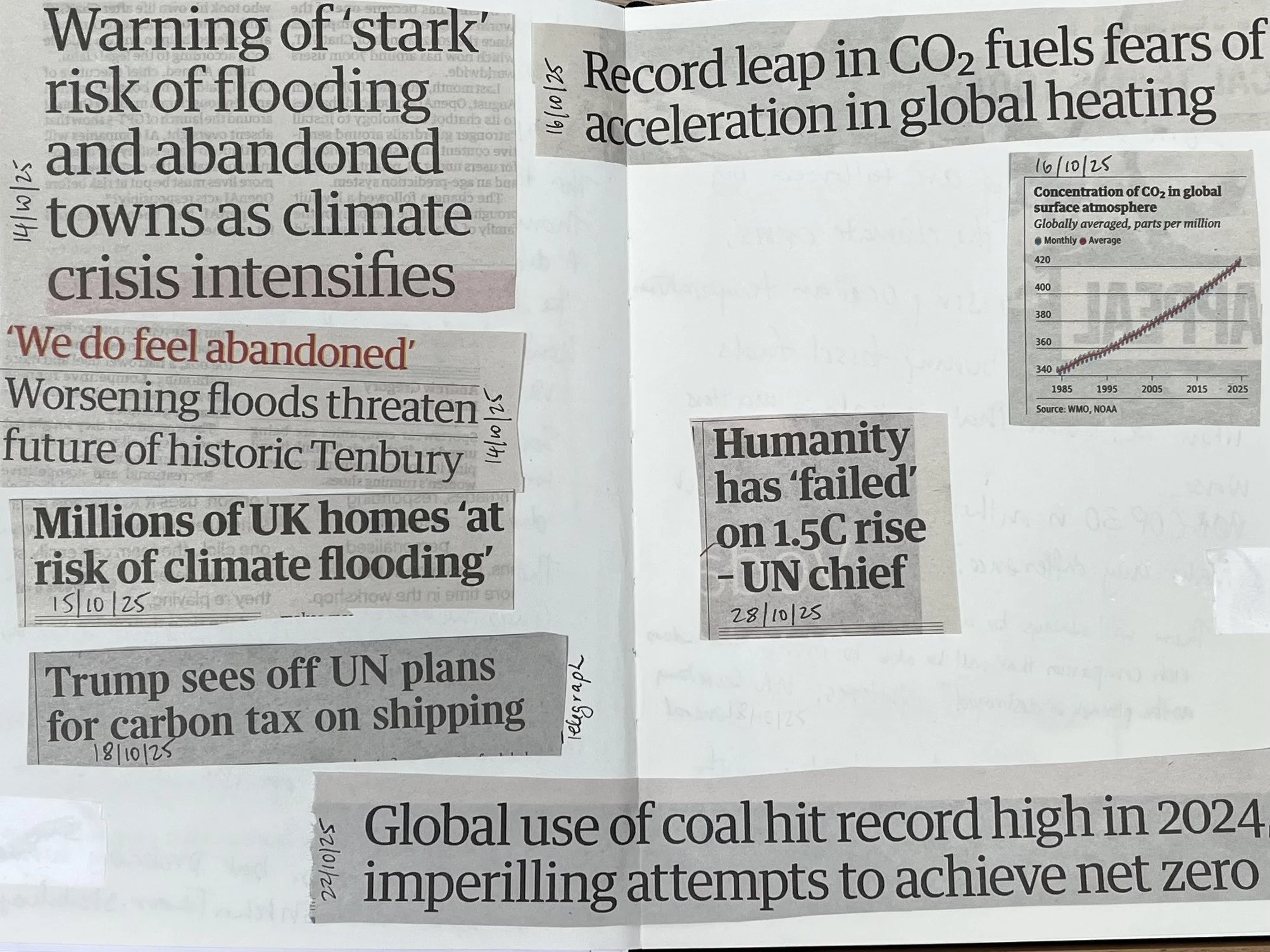 These headlines are from October 2025. There is clear evidence that the climate is changing, global temperature is rising, CO2 in the atmosphere continues to rise, and everyone is experiencing more extreme weather. However Trump leads the way in refusing to accept the evidence and the need for action.